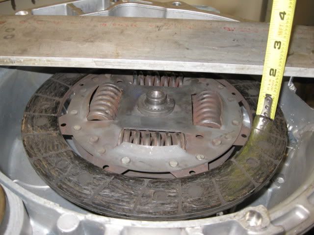 The pressure plate has a protruding lip by the torque bands and it is 1 1/4" from the flywheel face. This part could make contact with the differential bulge deep in the bell housing. The differential bulge at the OD of the pressure plate is about 3" to 3 1/16" deep into the bell housing.