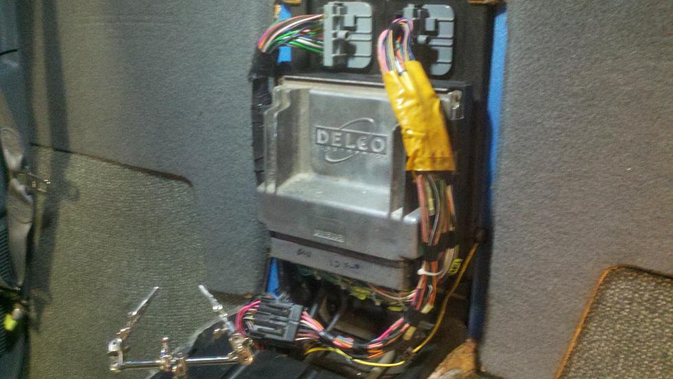 The wiring is 99% done. Just need to ring out a few lines. I put the data link connector in the stock location.That was a booger taking the firewall feed through apart so I could run the harness through it.