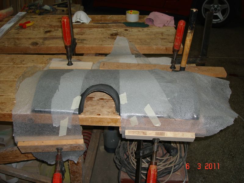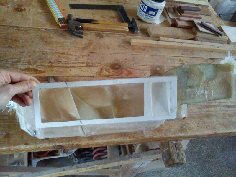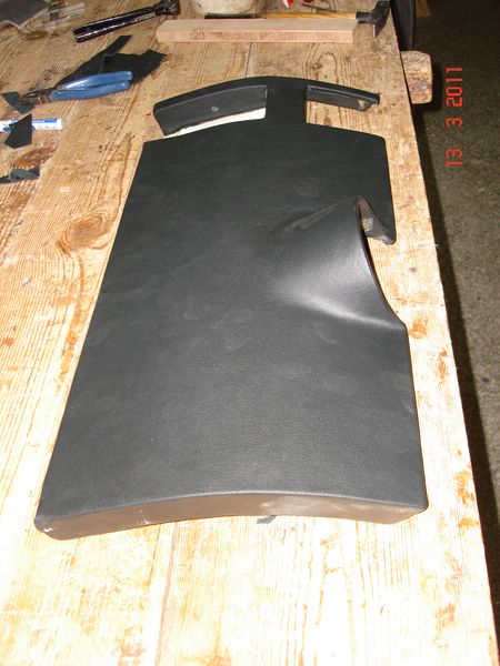 Do it in two section this time, first the piece under the steering column; again using polyester resin.