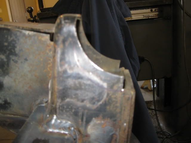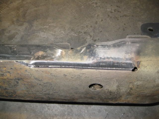 The last modification was to the lower lip of the passenger cradle rail. The 2 1/2" exhaust runs within 3/8" of it and it needs more room for the enlargement to 3". I had kicked around trimming it for the entire length, but chose to just do the portion that is behind the oil pan.