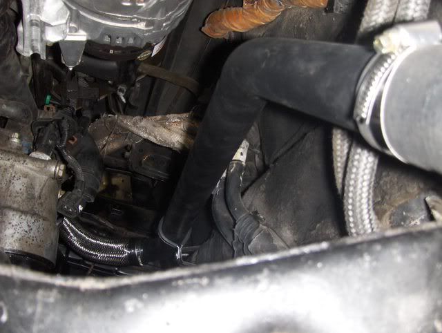 For the cooling system I am using a lot of 1.5" J-bends welded and pressure checked. They hold 100psi, so I think they will be good for the cooling system. Here is the return pipe....as best of a shot I can get in the car. The outlet pipe is still in the bench vice for the last week. I think the holiday rush of customers might die down soon, and I'll hopefully get the cooling system completed.