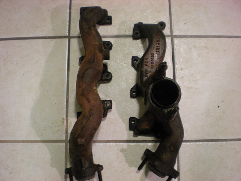 First I went to the wrecking yard to find the new set of exhaust manifolds that I wanted to use. I chose a set of cast iron manifolds off of a 92 deville. They looked like crap, as most yard items do before cleanup...