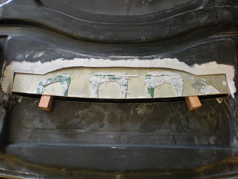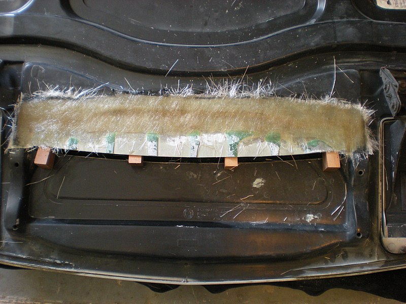 Glass work done. Still have to fill the corners and add the mesh to finish it off. The car feels much more stable at high speeds now. Well worth the trouble.