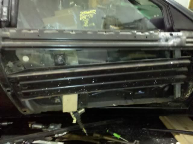While we were waiting for the headlight buckets to arrive, we took the doors apart to replace the window felt, window motors, clean and lube the regulators, replace the dew wipes, and replace the driver's side door hinges. We are also going to attempt to polish out the scratches in the window glass.