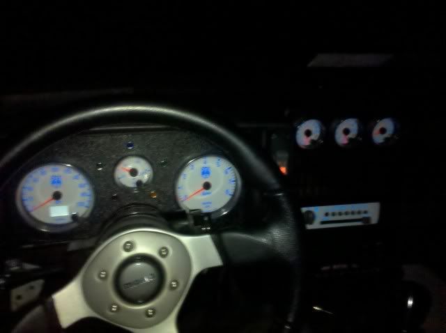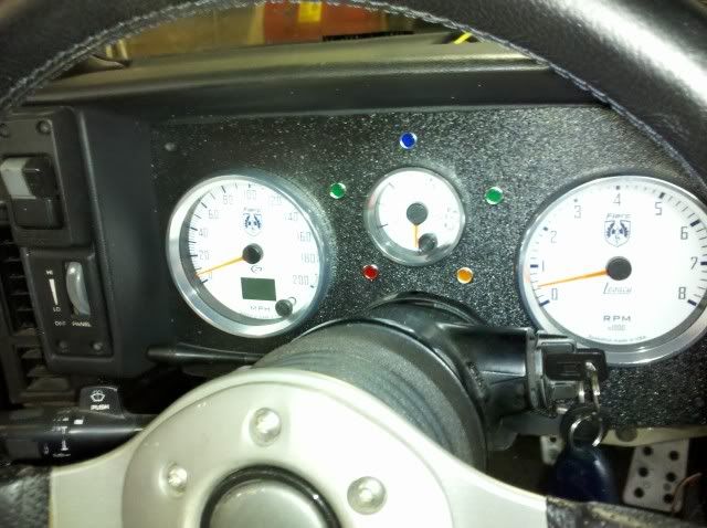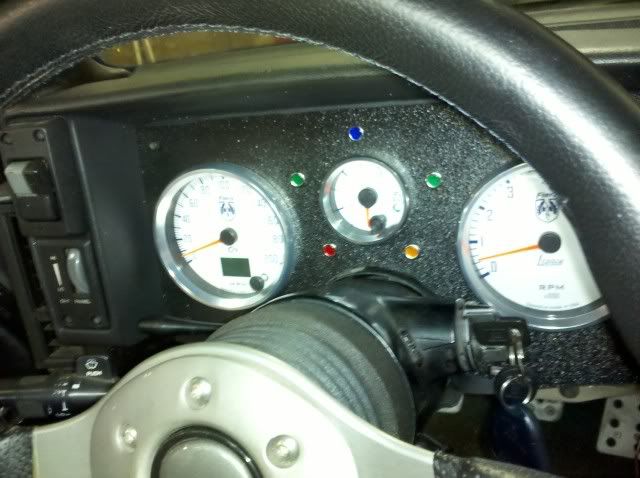 Some updates on what's been happening. Team Guru has created a custom instrument panel and installed my new gauges. Since it's a black car with black interior...I opted for white face gauges with blue font.