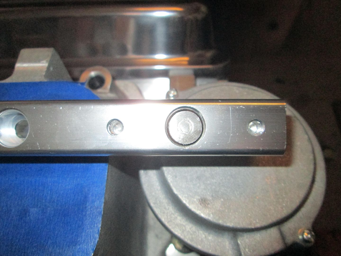 Next I set to work on the fuel rails. They are setup for a rail mounted regulator and I am converting them to returnless, so I needed to fill the regulator port. I turned a plug with the same o-ring groove as the regulator, fabbed up an aluminum bar to span the plug and keep it secure, then trimmed the stainless steel button heads to the right length.