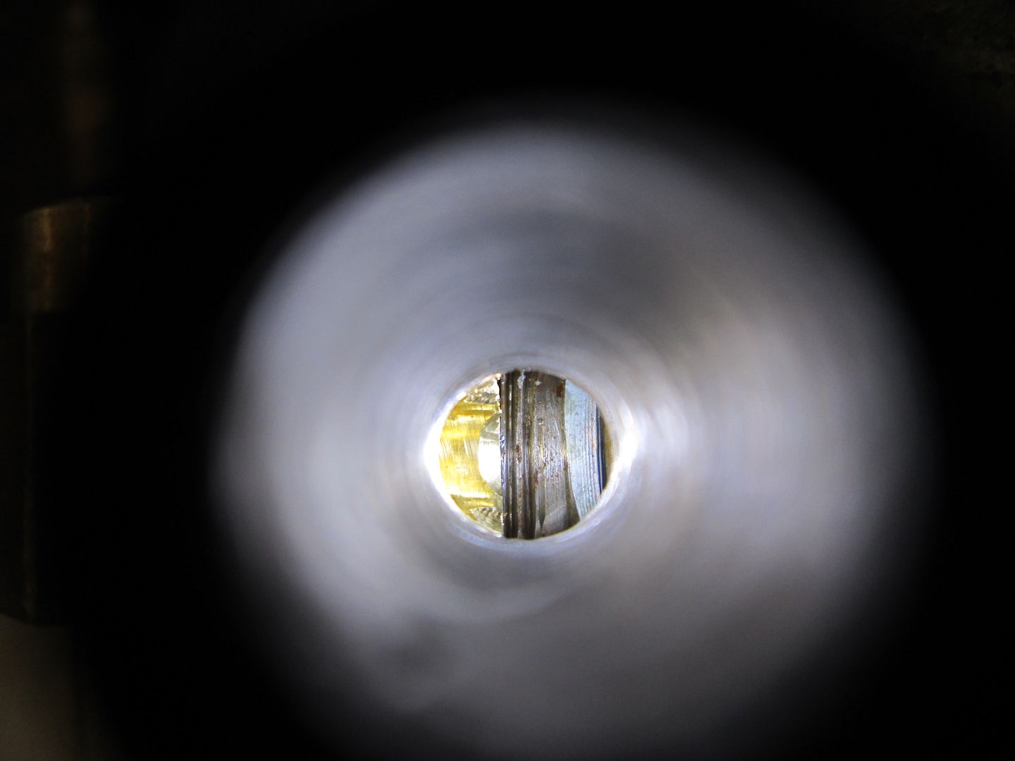 Next order of business for the fuel rail was to add the fuel pressure gauge. Pretty simple with the 1/8 NPT elbow, but when it was tight, the inner portion of the threads were partially blocking the port, so I drilled down through the fitting to clearance the part the protruded into the opening.