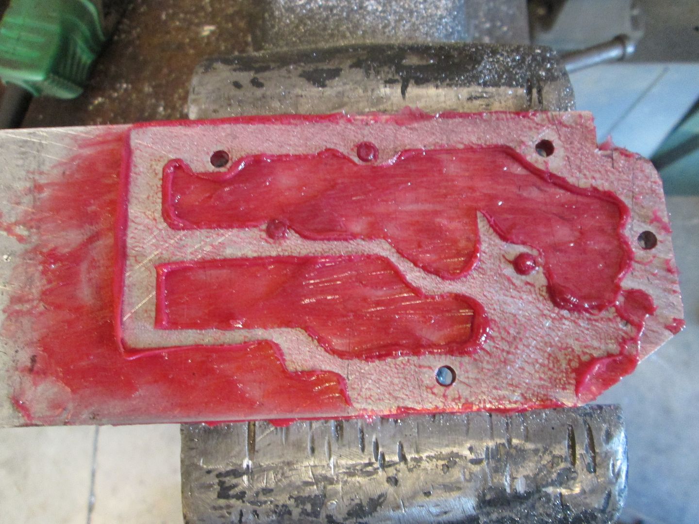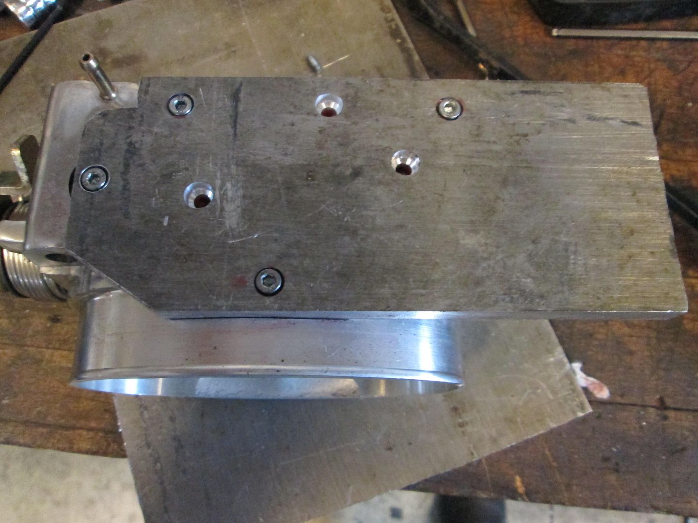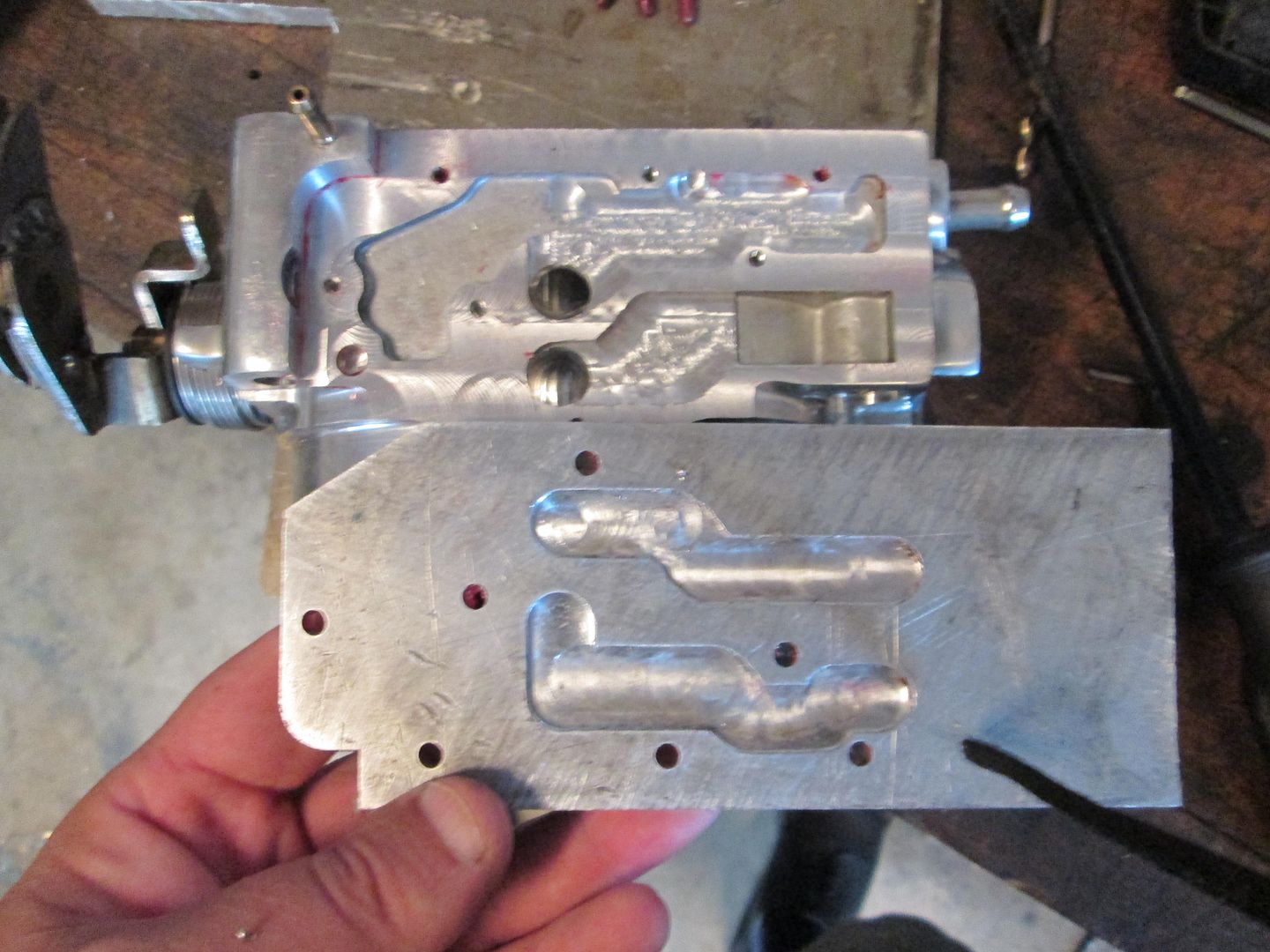 Then I cut out a piece of 3/8" aluminum plate, cut it to shape, located and drilled all the bolt holes. Then used some grease to transfer the port pattern from the throttle body.