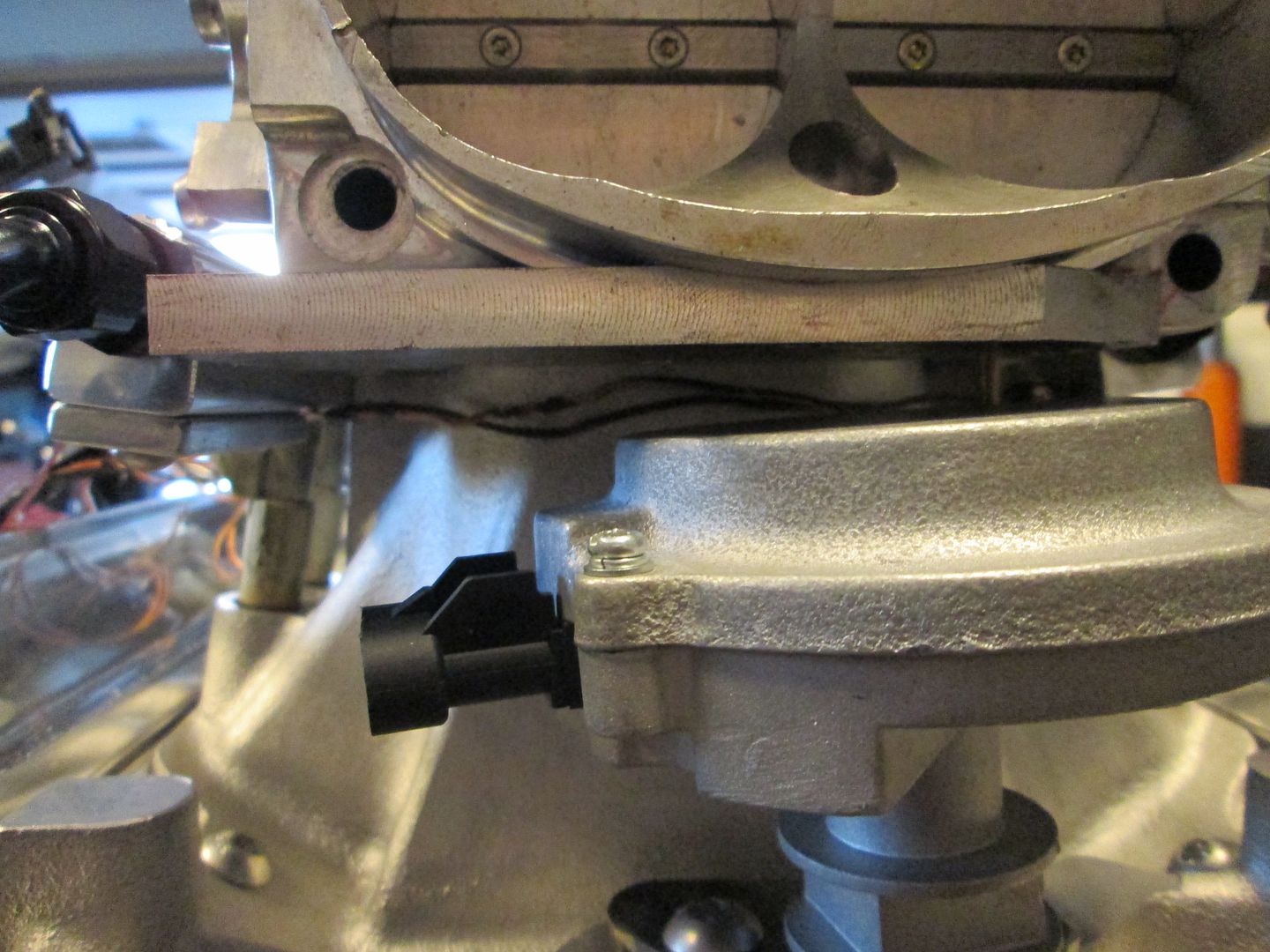 Here is where the IAC will be on the underside. I do need to mill the plate or the IAC housing to get more clearance to the connector on the distributor: