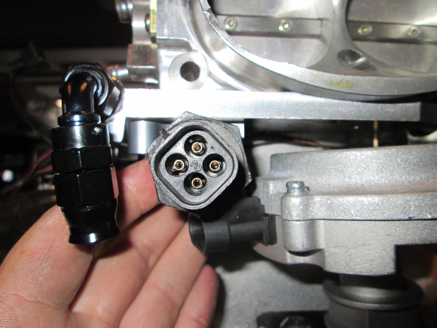 I don't like seeing wires, but sometimes there is only 1 optimal location for the sensor to go. I am referring to the engine coolant temp sensor. My philosophy is the ECM should see the hottest portion of the engine, so it can start pulling timing when needed to protect the engine. If it sees a cooler portion of the engine, it might not see the hottest cylinder and not intervene to protect it. For the SBC (and the LSx engine as well) the hottest location with a coolant port is between cylinders 8 & 6. To keep sensors and wiring minimized, I am using a 3 wire sensor that will provide the needed signal to the ECM as well as the stock fiero temp gauge. The ECM will have 100% control over the fan, so no other coolant sensor or switch is needed.