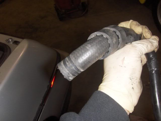 Here is a pic showing the clearance as well at the cooling system filled. Notice I added a cooling system filter to the system to catch any debris that may be in the engine or anywhere in the cooling system.