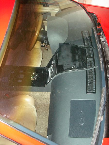 The top of the glove compartment covered with velvet inside and black satin paint outside. The two white dots are LEDs.
