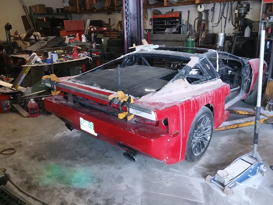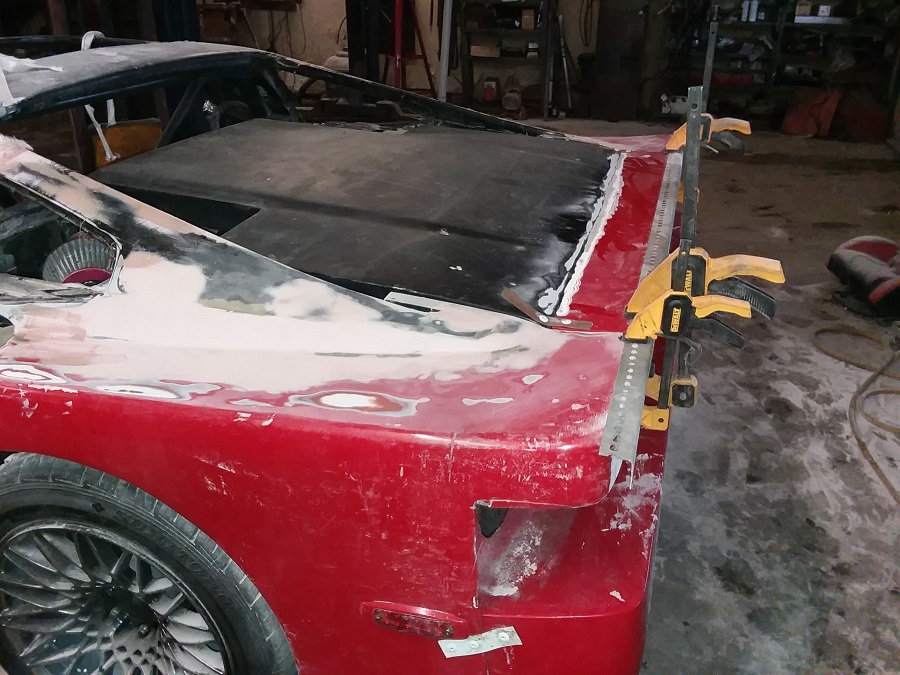 well today since it is slow i am playing with the rear deck lid i am using a GT lid and have cut the back off the kit car lid and am attaching it to the GT lid this is giving me a much better fitting deck lid and better looking when shut or open