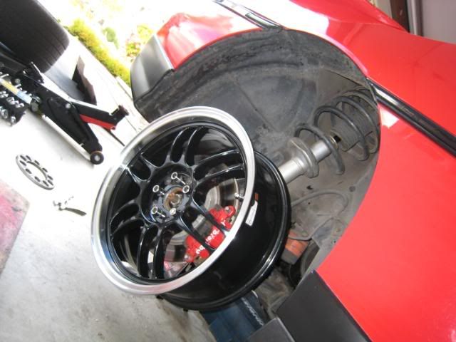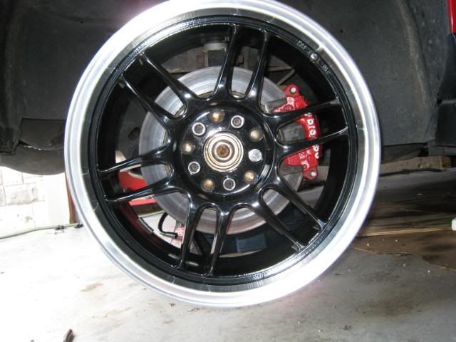 I was able to make it home for the thanksgiving weekend (Canadian) and I was able to bring a rim home for the test fit and some pictures. Unfortunately there are no tires on the rims yet, so you have to use your imagination: