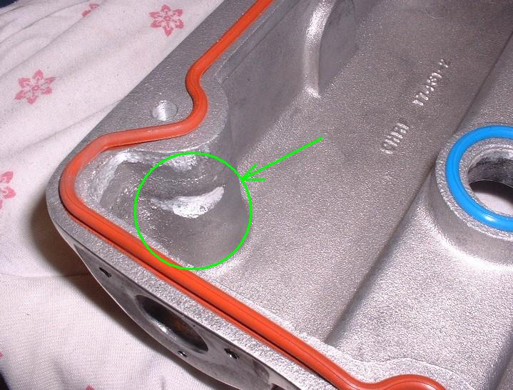 Problem #4 involved more casting issues. When I turned the cam covers upside down, I noticed that the groove for the cam cover gasket was cast and not machined into the parent material. This isn’t necessarily a problem in itself, but again, the casting wasn’t perfect. There was a fair bit of very granular casting flash in the bottoms of the gasket grooves which would have prevented me from installing the gaskets properly and would have caused leaks. Here’s a picture of what I’m talking about: