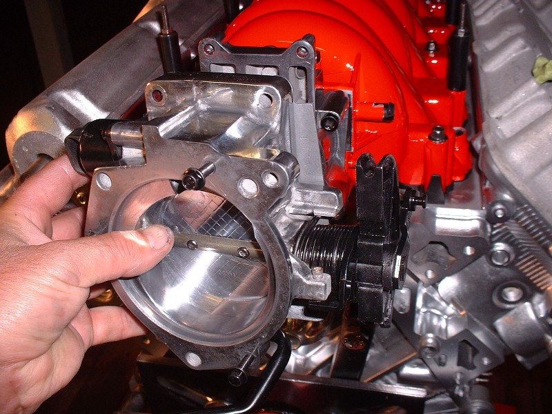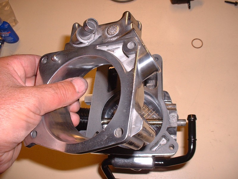 And finally the TB gets screwed onto the adapter (again). I used Locktite on all the screws to keep them from ever backing out on their own. And causing air leaks.
