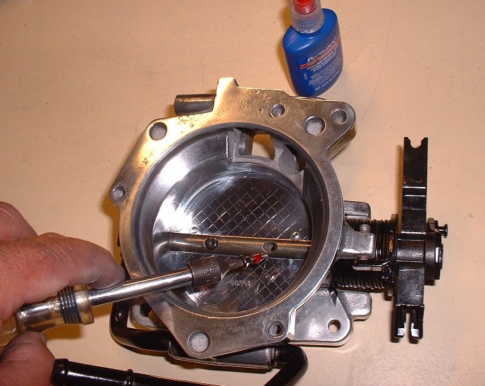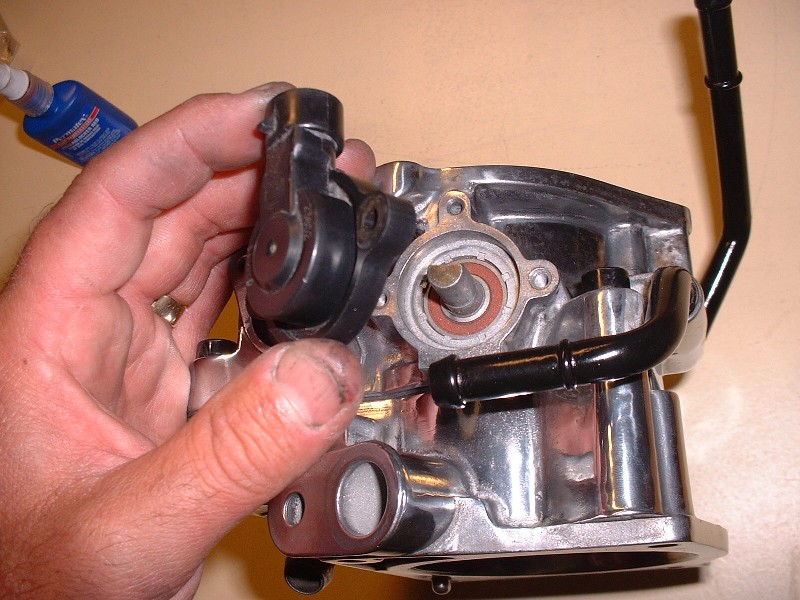 Once in place, the throttle plate gets secured by two tiny screws that are Locktited into place… they’re the last thing you want to have vibrate loose because they’ll only head in one direction if they ever come out!