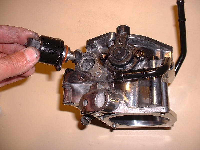 Next was the throttle position sensor (TPS). You can’t go wrong with this one… the throttle shaft is D shaped so the sensor will only go on in one orientation. It’s held on with two little screws.