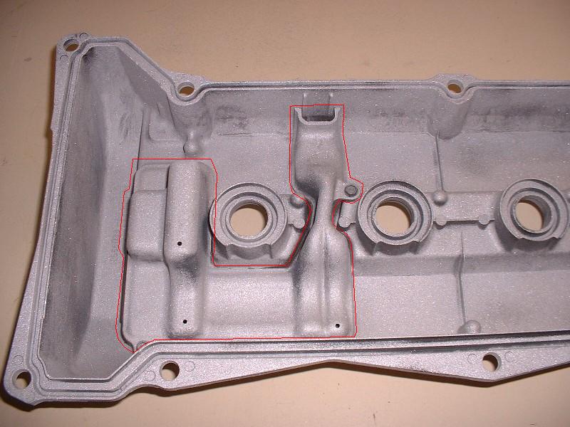 So problem #1: Something that took me a little by surprise was that the insides of the new cam covers don’t have provisions for screwing the PCV baffles into place. Here’s what I’m talking about on the OEM covers: