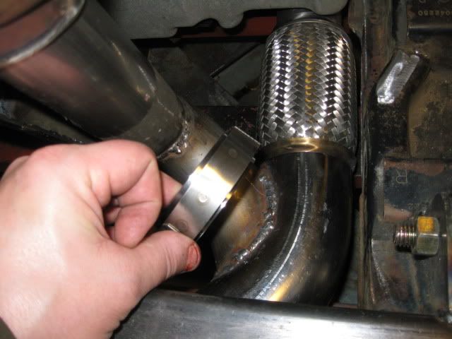 There will be two ring clamps that connect the exhaust to the manifolds. Here is the one in front: