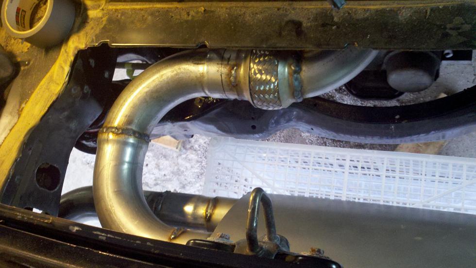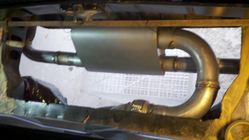 Its a true 3" exhaust with 2.5" out of the Flowtech Afterburner muffler. I tried to leave room for a Inter-cooler eventually. Thats why I decided to cut the trunk out.