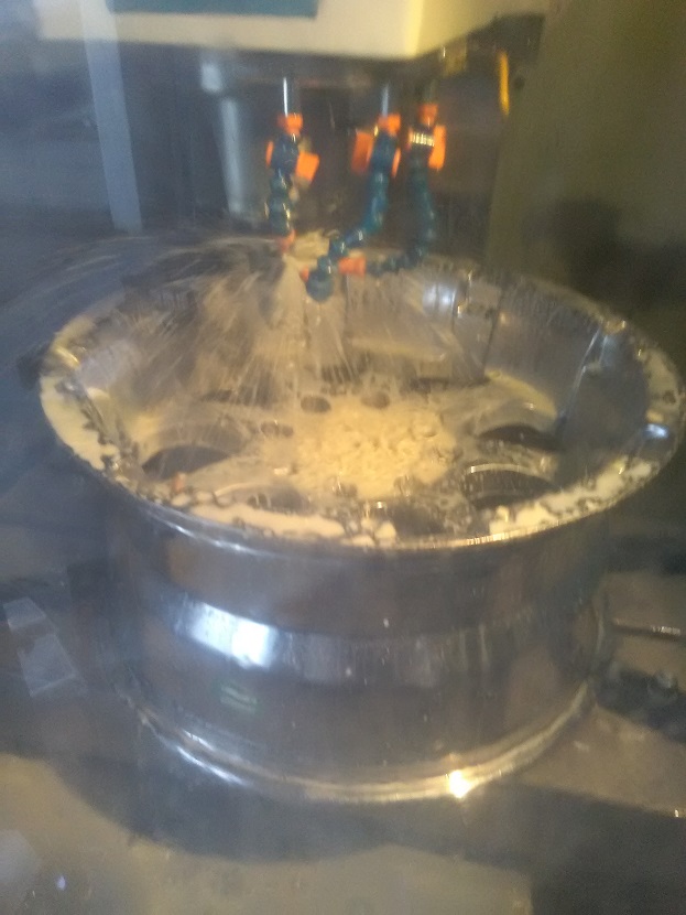 Finally got the rims on the cnc n redrilled. Looked waay too funny w the adapters. Tires were too far out from the truck, looked bowlegged cuttin