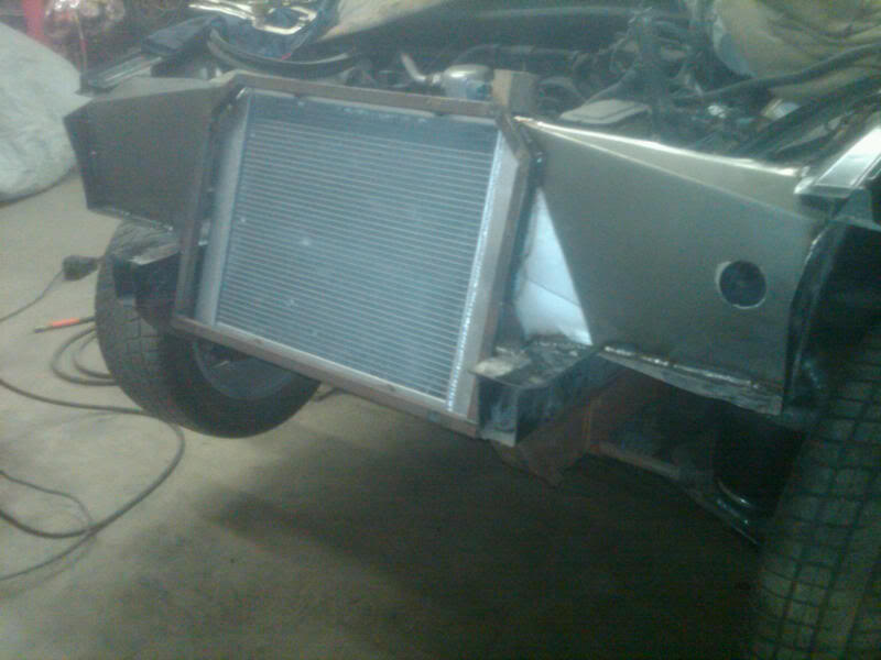 a couple of views of the radiator support and front bulkhead fabricated onto the original Fiero sheet metal. It doesn't look much like the original does it?