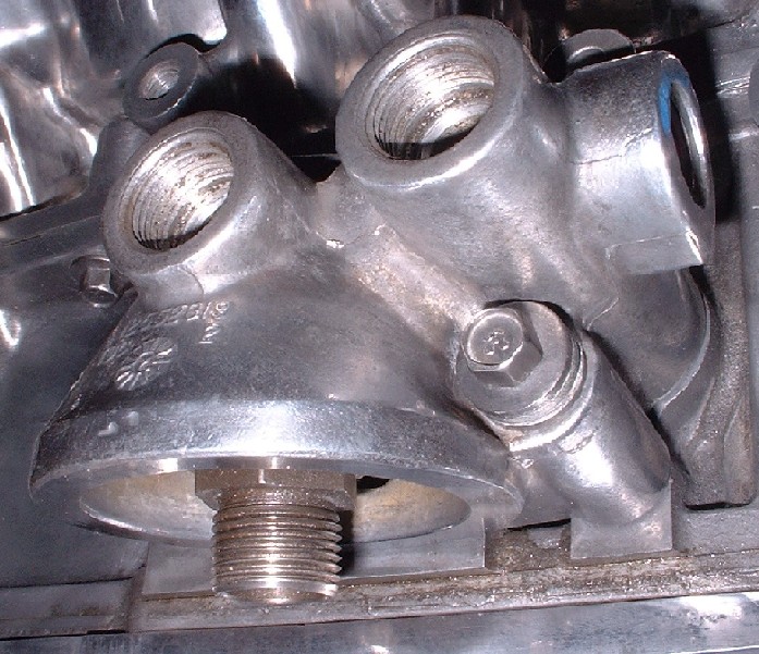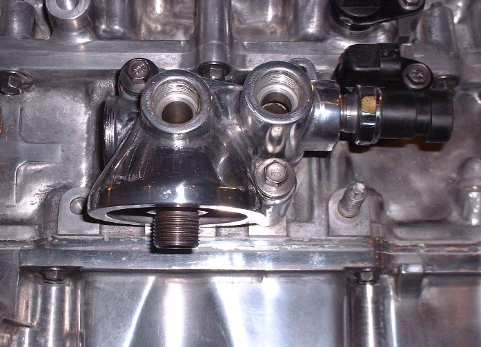I got two new o-rings in my rebuild kit so I stuck them on before tightening the mounting bolts to 18 lbft. The oil pressure sender also gets installed into yet another port on the filter mount. It’s a pipe fitting thread so don’t forget to use some RTV.