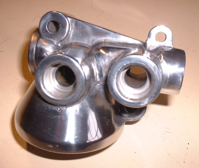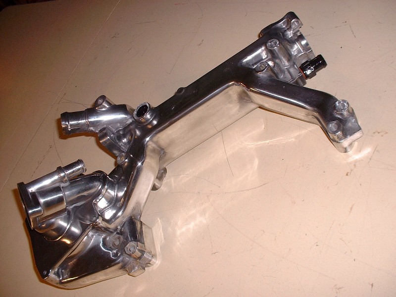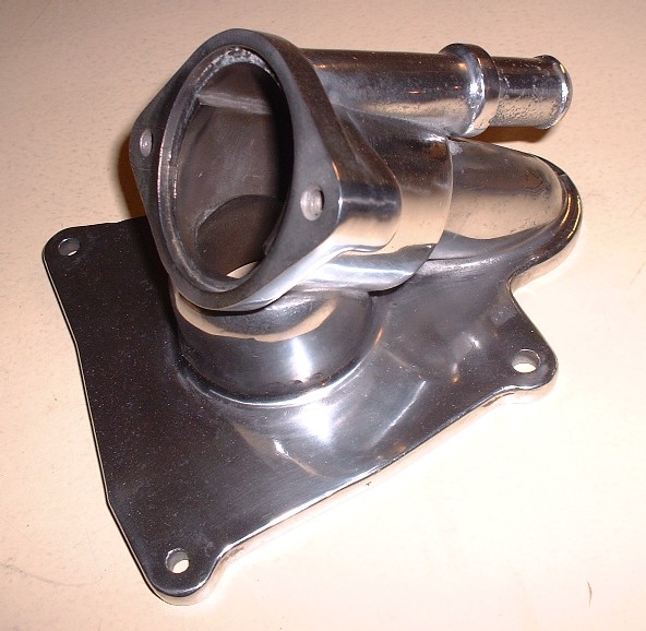 Here’s a close-up of the combination thermostat housing / water pump inlet. I personally don’t know how anybody makes any money polishing metal for others.