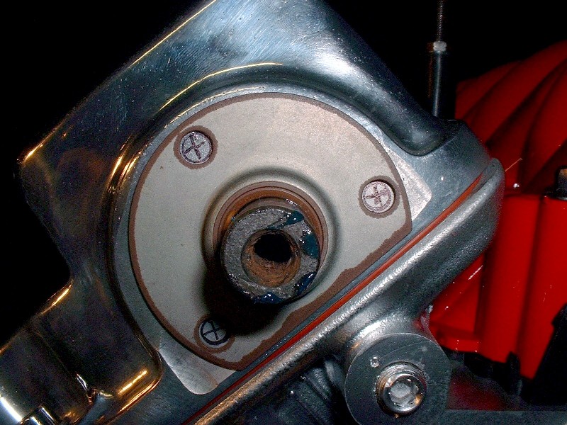 The next step is to locate the three oil seal mounting holes in the correct location so that the seal is perfectly centered on the shaft. The easiest way to do that is to install the seal on the shaft and mark the location of the holes: