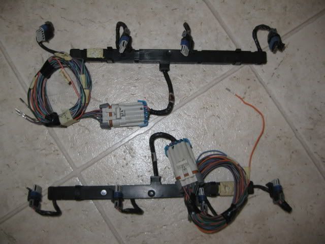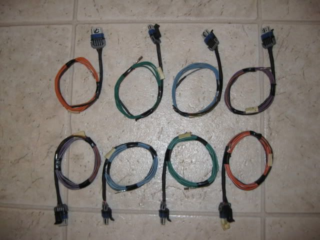 Spent some more time on the harness simplification. Since the coils were relocated, I had little use for the unsightly coil sub-harnesses, so I took them apart and wired up each coil individually. The first 4" or so from the connector was wrapped in heat shrink insulation to protect the wires and make the harness as small as possible when the individual coil wires come off the main harness along the bellhousing area. I also use a black sharpie to put the cylinder # on the internal portion of the connector. Before: