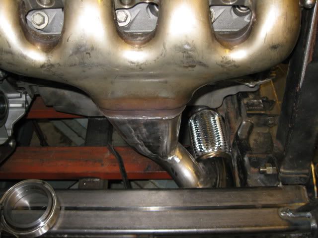 I was also able to finish the rear collector. Maybe on Sunday I will get the V-band clamp installed and the rest of the exhaust welded up.