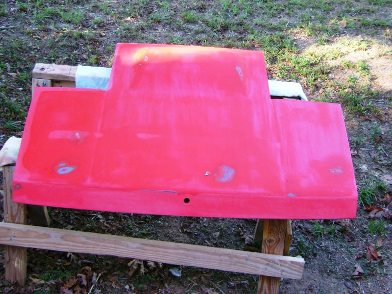 I got some paint off of the FedEx truck after work today. Went to town and purchased the new temperature gauge sending unit I ordered yesterday. Got my saw horses ready for some body work I want to get done tomorrow. I want to get the upper rear roof section, both quarter panels, and the deck lid ready to top coat this weekend.
