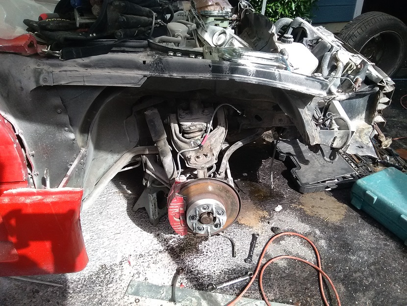 Went to do the cradle stretch, yanked the rear bumper off, pulled the trunk fan n carpet, dropped the cradle, went n got metal n 12x1.75 nuts. Everything would move ok, shift cables really tight, new coolant hoses, everything else has plenty o slack. Alternator would be hitting the frame just forwards of where the new cradle support would be sitting. Coil spring would hit its well. Im going to hold off for now, doing the airbag setup soon so no rear coils.