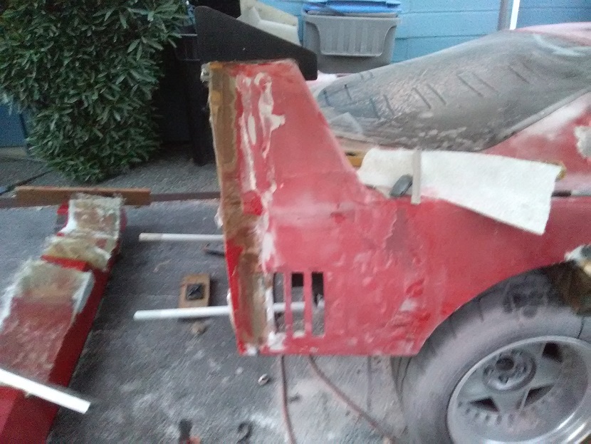 Been going to town on this car! Burned thru almost another 2 gallons of resin. Bought another 4 yards of cloth and mat. Started to make the rear vents smaller