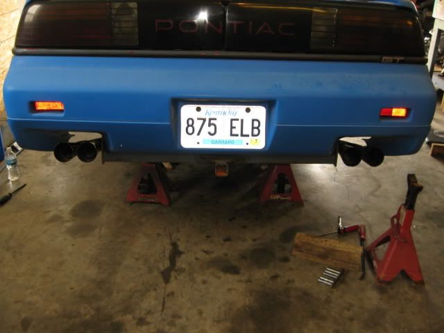 Wouldn't it have been easier to weld smaller brackets to your rear cradle cross-member and suspend the muffler with springs like the OEM Fiero? |