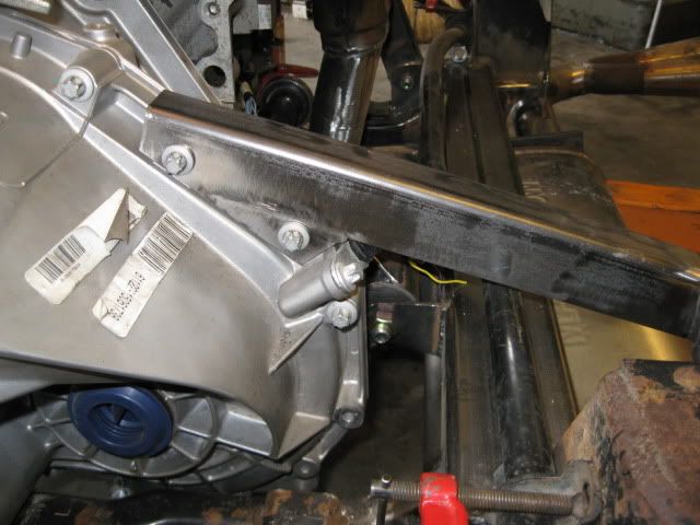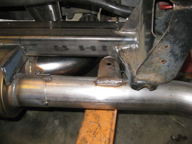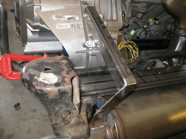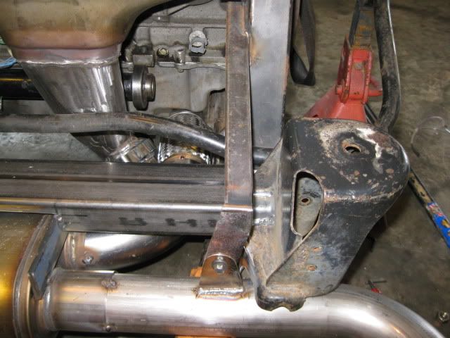 The passenger side one is just some 1x1 square tubing welded to the rear engine mount bracket and the tab welded to the end to connect to the stainless steel tab.