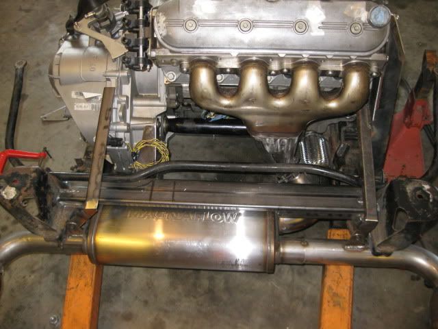 Put the engine/trans/cradle back in the chassis to located and tack weld the rest of the exhaust system: