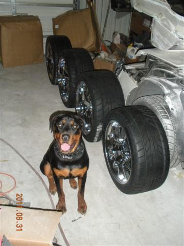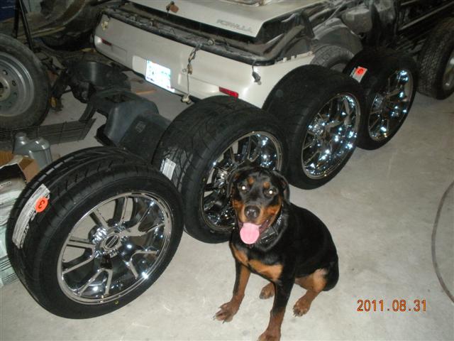 Thanks, 18X10 rear and 17X9 front Wait until you see the new front. I hope I will get a little time to work some on it this weekend. I did notice the front sway bar is not connected to the a-arms. Guess it has been that way for a while and would explain why the front was feeling a little loose when I drove it before I cut the car to pieces. I gage if I'm making the right decisions on how big my wifes smile is when she walks out to look at what I am doing. Like when we pulled the wheels out of the boxes.