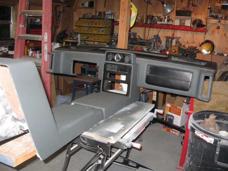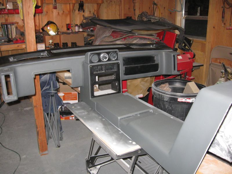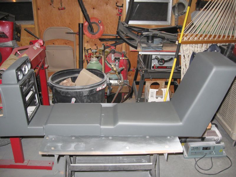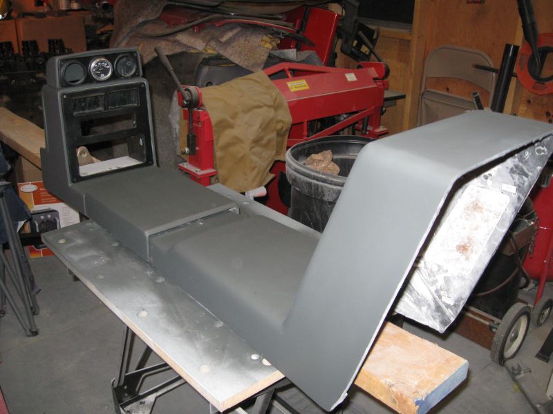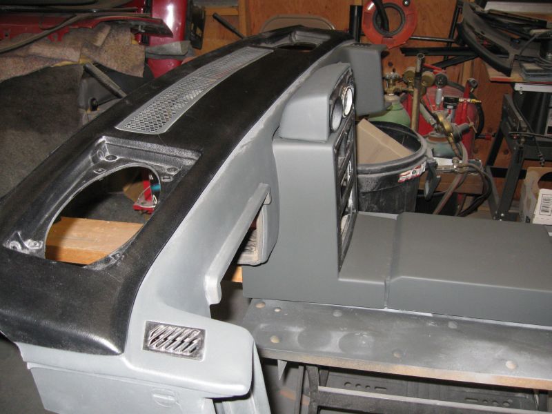 I put some color on the AC surround and the shifter console this afternoon and started mocking it up in the shop. I am really liking the smooth - plain - generic - whatever you want to call it - look. |