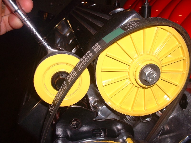 What about moving the alternator to the bottom, where the ac was? You can make a standard slot adjuster, eliminating the tensioner. [This message has been edited by Gokart Mozart (edited 10-06-2010).]