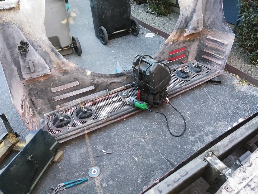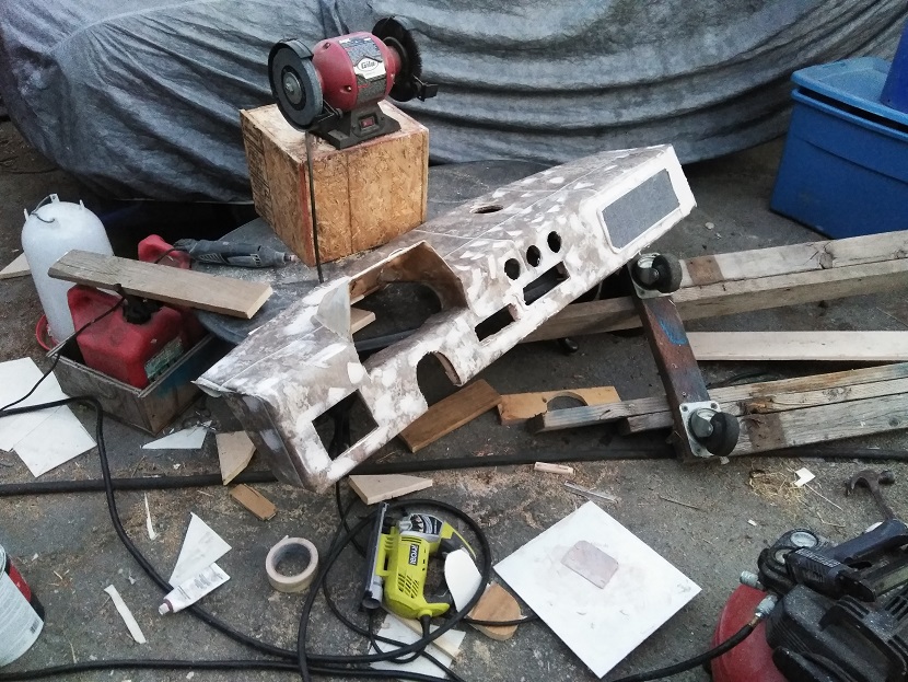 Im going to need to drive it to the machinist shop soon so Im getting it roadworthy-bolting all the panels down so they dont come off on the freeway. Still tons of welding and fiberglass details to do but it feels awesome to be done cutting this thing up. About time to change this turd buffing wheel, it smells like sh!t