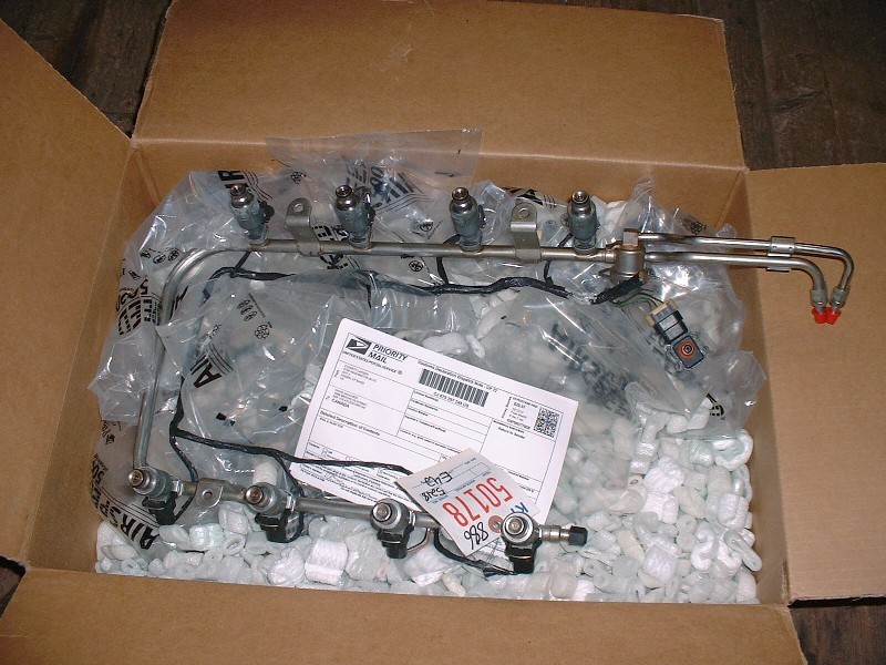 A couple weeks ago I started surfing eBay for a stainless steel fuel rail and came up with one from an Oldsmobile Aurora for $50 including the injectors, pressure regulator, MAP, and harness. I probably could have gotten it for cheaper but I decided to use the “Buy it Now” button since I figured it was a good deal as is. It arrived a couple days ago and except for the electrical connector having been cut off, it was in good condition. I don’t need the connector since I already have one from the old plastic Northstar rail.