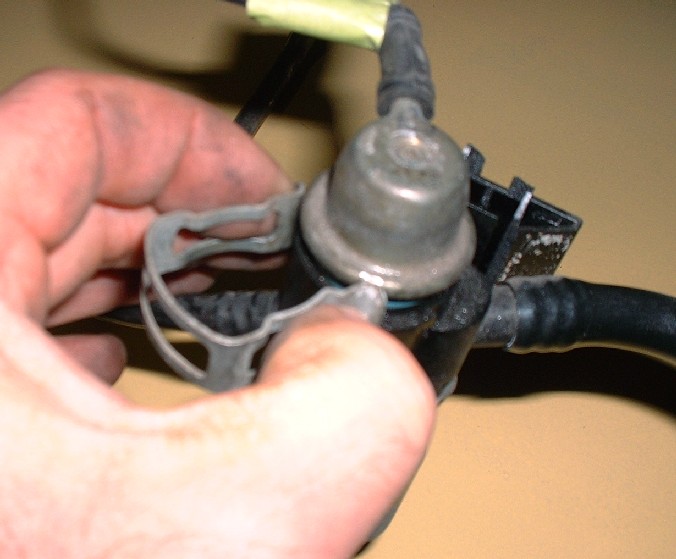 Since I wasn’t entirely sure the Aurora rail had the same fuel pressure regulator or that it was set at the same pressure as the Northstar, I swapped them around. To remove it from the rail it’s a simple matter of pulling off a retaining clip with your fingers (this one is on the old plastic rail)...