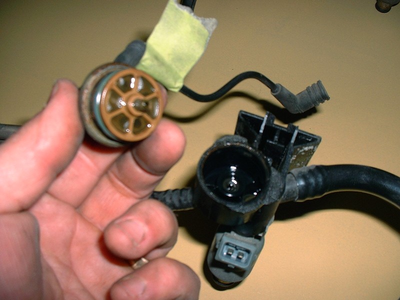 …and pulling up on the little regulator. It’s a good thing I decided to swap them over because the inside of the regulator on the Aurora rail was partly rusty and very gnarly-looking. If you do this yourself, be aware that there’s a large o-ring on the regulator OD, then there’s a very fine plastic fuel filter, and deeper inside the housing part of the rail, there’s another tiny o-ring that seals against the little tube at the bottom of the regulator. Sometimes the filter stays inside the housing, but the tiny o-ring almost always stays inside it.