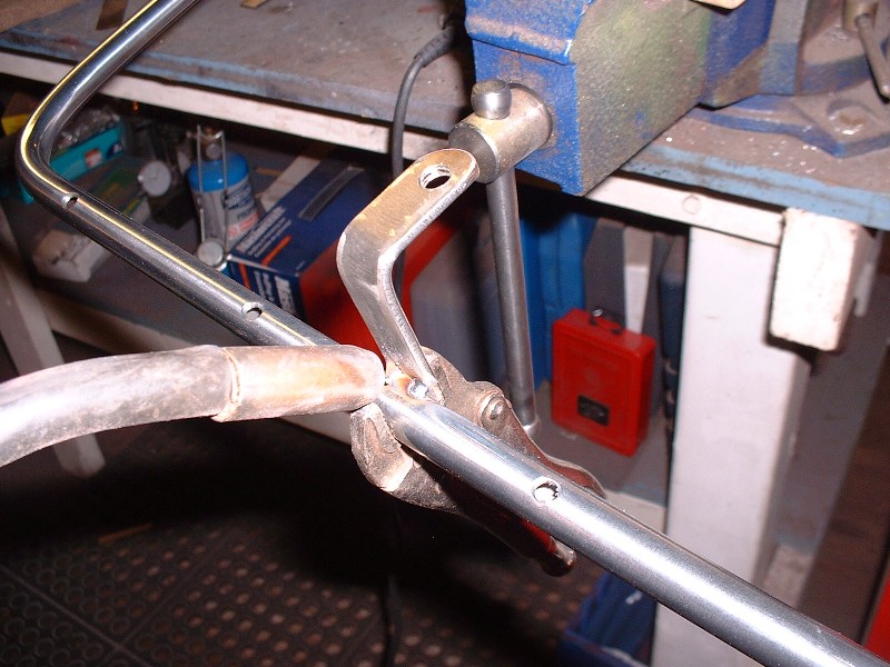 I kind of knew that two legs wouldn't be enough, and was right, so I fabbed up another leg and welded it on to keep the whole thing from teeter-tottering.