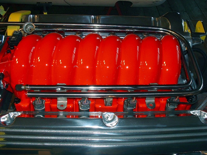 Bingo, Jefrysuko figured it out! Just kidding... Erik was right. I kinda figured it would take someone with a Northstar to spot the difference. I wanted to finish off the "cleaned-up" manifold look by hiding the wire harness to the injectors. My first thoughts were to run them underneath the intake in the valley between the cylinders, but that would've meant having to drill additional holes in the plastic somewhere to get them on the right side of the manifold again. The space is there to do it, but I wasn't keen on removing some of the webbing under the manifold to accomplish it that way.