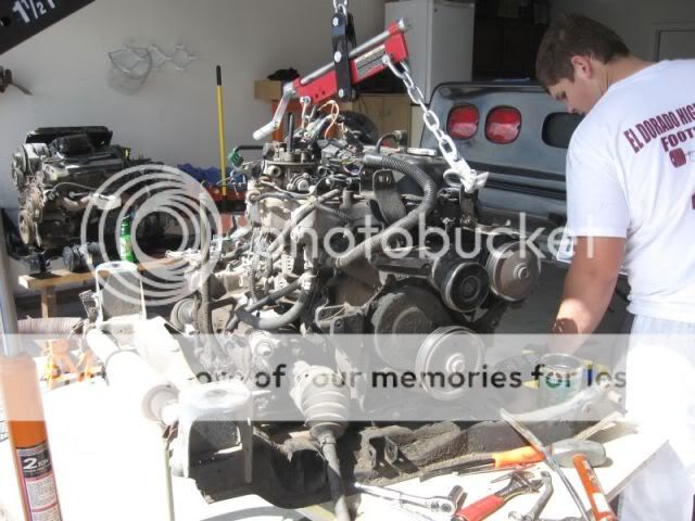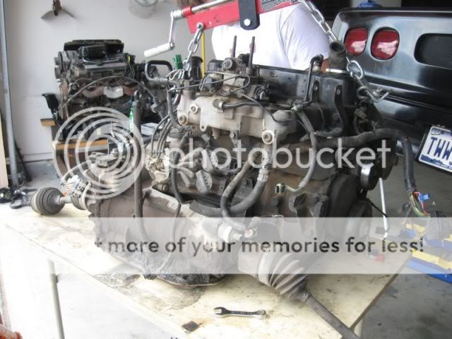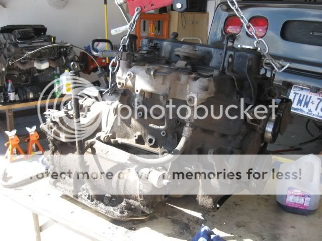 Got a lot done today. We got the Duke drug out and stripped down. I forgot how many new parts I had installed on the old girl. I'll be posting a bunch up in the Mall in a week or so. After we stripped the motor and removed it from the cradle, we tossed it in the trailer and hauled it off to the junkyard - even tossed out an old 2.8 that has been in my way since the "Ol Yeller" days. I just wanted to drop em off but I ended up getting 150.00 in credit at the Mega Pull. That will help with some more odds and ends that we will need to finish the swap.