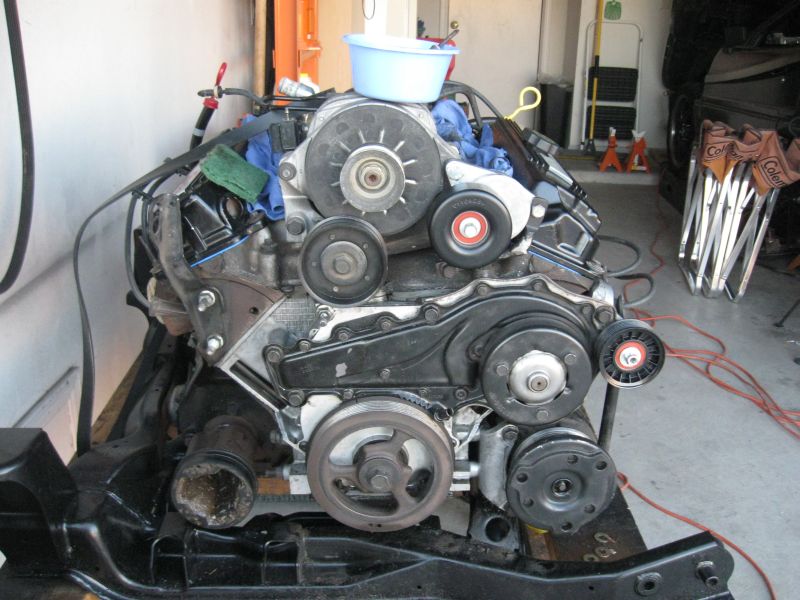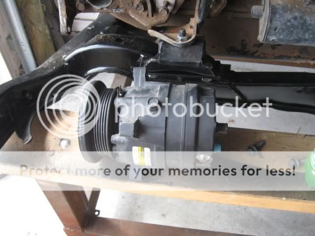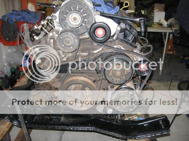I was going to try and adapt the 4 cyl AC pump to the 4.9 but have decided that I will just get a stock Caddy AC pump and be done with it. Again, time is critical now. Tomorrow I have to go to the Mega Pull and get the rear AC pump mounting bracket and we can get the tensioner pully and belt all finished up. I am hoping I can stuff it in the car tomorrow afternoon for a test fit.