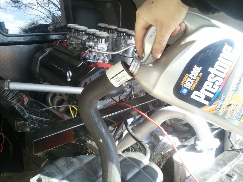 I'm not a big fan of checkerplate so I reversed it, polished the backside of the aluminum panel and fastened using stainless hardware. I also started adding coolant to the system and mounted the throttle cable: